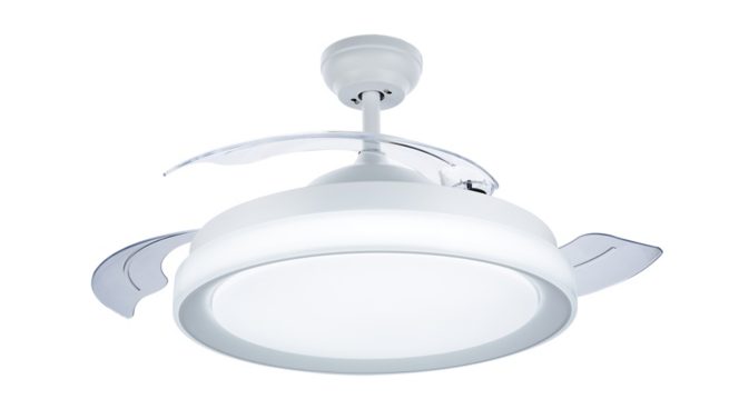 Say goodbye to spinning shadows on the ceiling: this fan has transparent blades that can be folded into the light and out of sight when not in use.