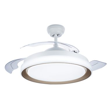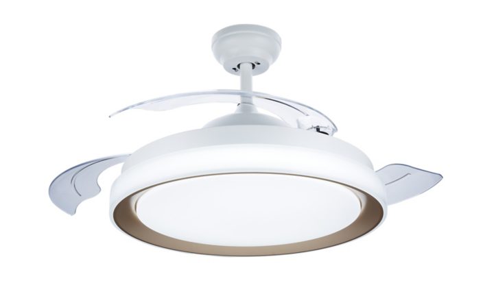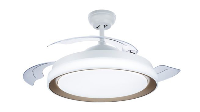 Say goodbye to spinning shadows on the ceiling: this fan has transparent blades that can be folded into the light and out of sight when not in use.